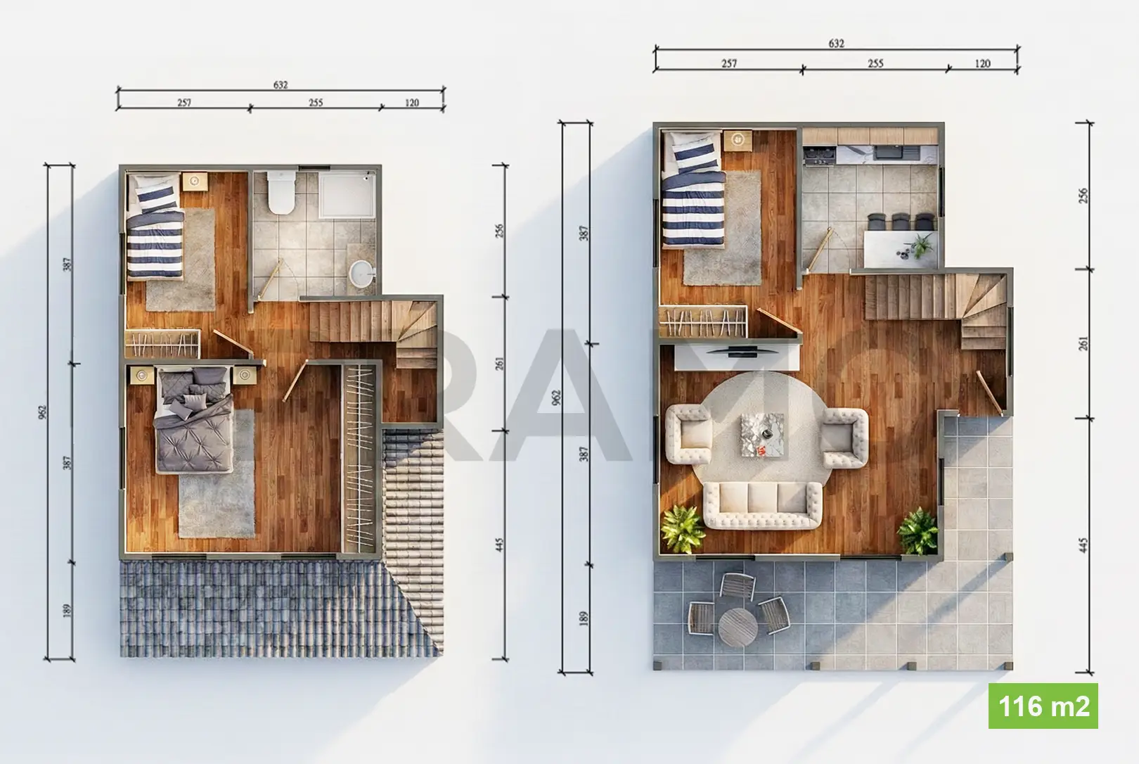 116 M2 Çift Katlı Çelik Ev