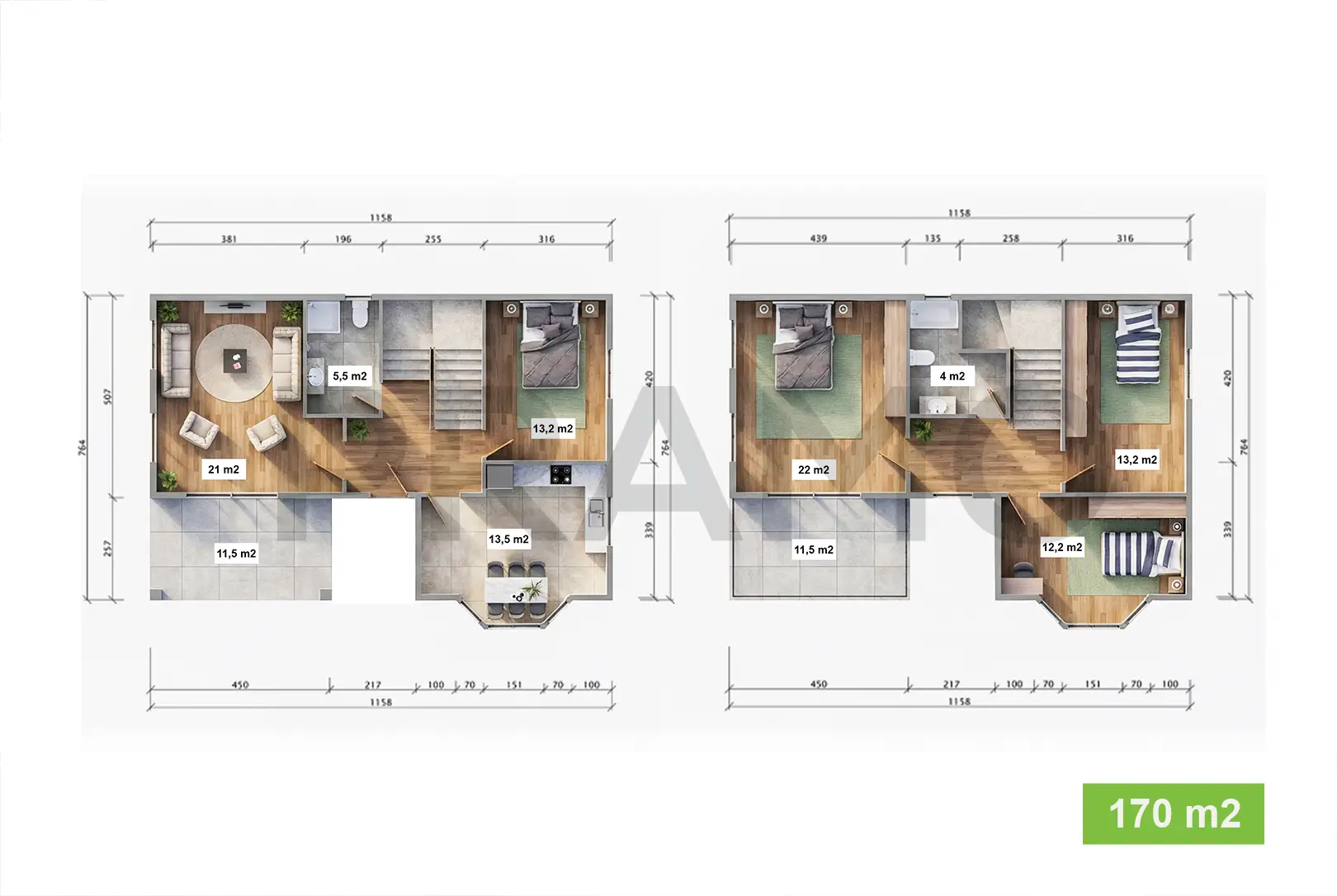 Pramo Prefabrik Yapı Teknolojileri tarafından modern yaşam anlayışıyla tasarlanan 170 m² Çift Katlı Prefabrik Ev, iki katlı geniş yapısı ve işlevsel oda planlamasıyla konforlu ve uzun ömürlü bir yaşam alanı sunar. Kalabalık aileler, home ofis düzeniyle çalışanlar ya da geniş metrekareli ev tercih eden kullanıcılar için ideal bir çözümdür.